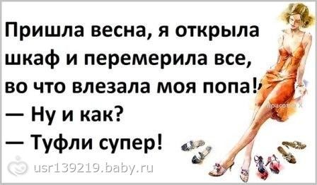 Похудюшки, для поднятия настроения ;) 14 августа 2014 19:56 Комментарии Пожалуйста, будьте вежливы и доброжелательны к другим мамам и соблюдайте правила сообщества ПожаловатьсяСкопировать ссылку oksy Алис12 лет Монтова ПожаловатьсяСкопировать ссылку Валерия назар14 летЕва12 лет Тулон ПожаловатьсяСкопировать ссылку Natalia Максим11 летДима29 летАлексей26 лет ха ха ха умеешь ты Кать прибодрить! ПожаловатьсяСкопировать ссылку Елена Сынок13 летДочурка8 лет Париж Я под столом ПожаловатьсяСкопировать ссылку Liliane Лилу11 летНестор11 лет ))) ПожаловатьсяСкопировать ссылку Ксения Гречишникова Ирина20 летГеоргий18 летАлиса11 летМария8 летВиктория4 года Геленджик ПожаловатьсяСкопировать ссылку Ольга Алексеевна Максим12 летАлександра6 лет Лион ПожаловатьсяСкопировать ссылку ЗлаяЗая Шилопоп12 летМатрешка18 лет Нижний Тагил Это про меня) ПожаловатьсяСкопировать ссылку Ирина Диана13 летКира12 лет Киров супер)))))))) ПожаловатьсяСкопировать ссылку ♥ღ♥ツТрофимамамаツ♥ღ♥ Трофим13 лет Сатка Да туфли супер!!! ПожаловатьсяСкопировать ссылку Alyona MamaThreeBoys Анджей20 летЭмерик13 летЛеонел9 лет Комсомольск Предыдущая статьяулыбнулоСледующая статьяНачинаю "слим даун"Актуальные постытелефон роддома 68 в москвепочему новорожденный срыгивает через нос