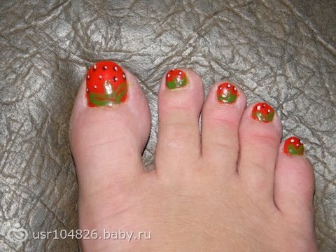 до этого рисовала себе арбузики, когда на сохранении лежала, но не сфоткала… теперь решила клубнички нарисовать… немного размазала, но это можно подтереть… как вам? похоже на клубничку?