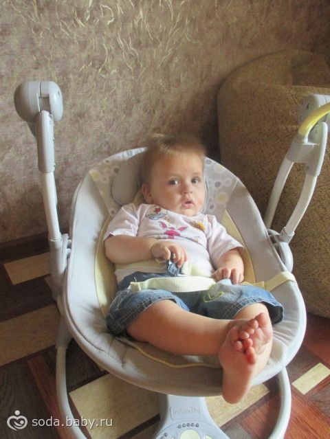 нам такие качельки подарили. сидит игрушки или динамик от куда музыка рассматривает. Один в них минус был, они на батарейках, которые быстро садятся. Муж запитал на узбой это точно ни какими коврижками...., сейчас вот уснул, сама не ожидала, в автокресле под шум фена… )))).