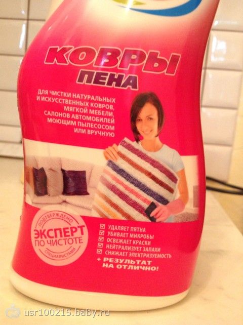 Та написано пену нанести, дать высохнуть и пропылесосить, я конечно еще щеткой все потерла, дала высохнуть пропылесосила… И что то ничего я не поняла, он остался липкий, запах специфический- средства и тот от которого хотела избавится! В итоге я взяла мокрую просто в воде тряпку и пробыла еще раз- стало лучше!!!