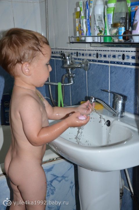 Мы уже сами идём в ванную, сами ставим стульчик, открываем под присмотром воду и моем ручонки)))