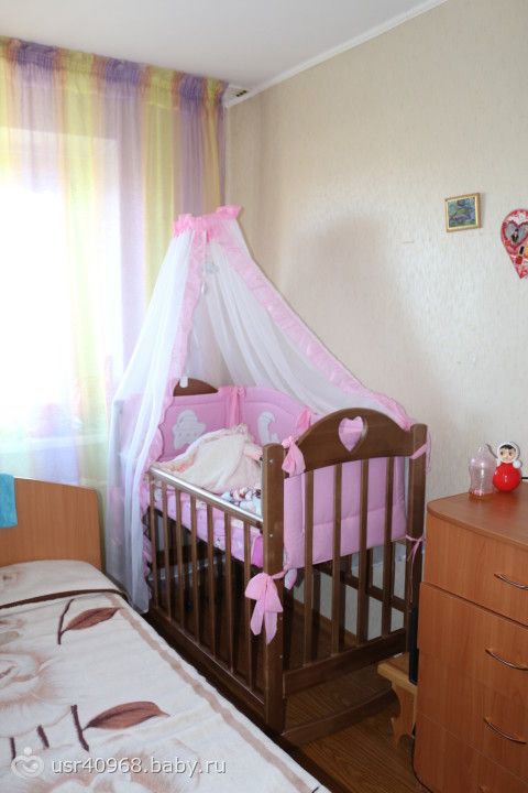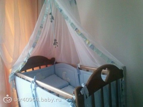 я кроватку ещё в середине декабря купила, а родила в мае. но она мне очень понравилась, такая новая у нас около ста тыс стоит, а я за 45 забрала вместе с бортиками, балдахином, одеялком. правда все было в голубом цвете, но мы с мамой переделали в розовое