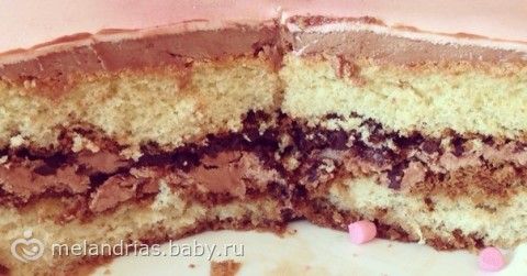Крем со сгущенкой, маслом и какао) Бисквитные коржи пропитала кофе с коньяком) А на крем покрошила нарезанный на кусочки шоколад)