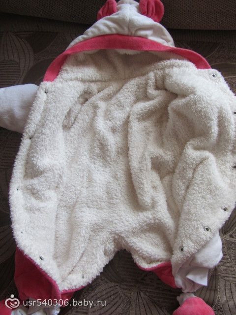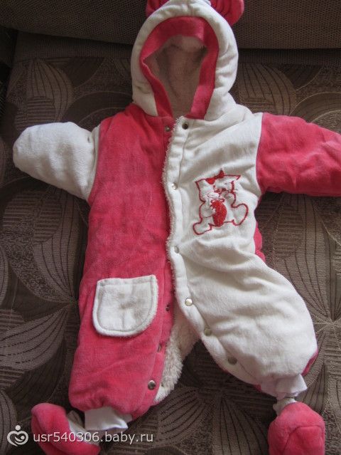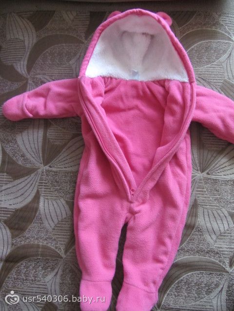 Комбез средней теплости. одевали под основной, теплый при холоде. Можно весной-осень когда похолодает. Размер 68 см. Примерно 3-6 месяцев. Одевали пару раз.
