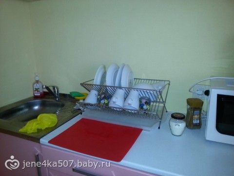 посуда, холодильник, микроволновка, туалет, душ, шкаф, двухспальная кровать, двухспальный диван, кухонный гарнитур, стол, стулья, шкаф купе, постельнее белье, полотенца, полка для обуви и вешелка в прихожке… а еще и на веранде стол и стульчики. пол ламинат — все новенькое, вообщем вполне комфортно. фотки с тел, не обращайте внимания