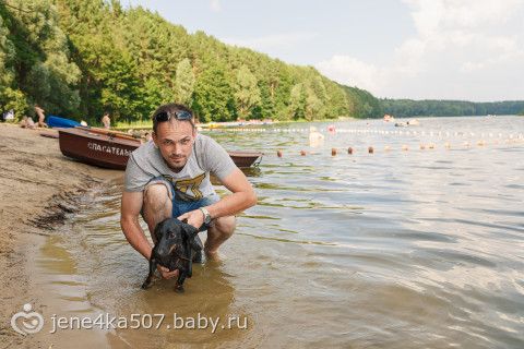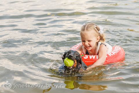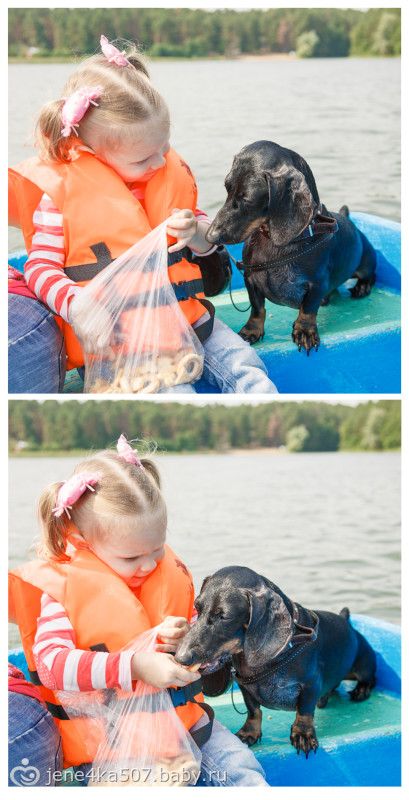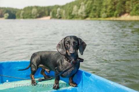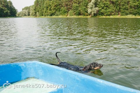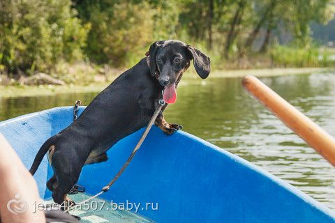Риччи — отважная такса)) Плавал за лодкой))