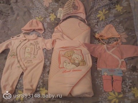 На выписку распашонка 56р, комбез 60р (ну чтоб потом ещё немного походить)