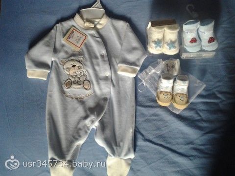 Сегодня замечательный день) Мы съездили погуляли в соседний город, а заодно купили нашему масику пару обновочек. Велюровый слипик и трое чудных крохотных носочков. Носочки и правда крохотные, просто надеты на пластиковые штучки в форме ножек.