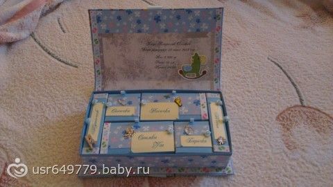 Добрый день)) вот решила по хвастаться)) всё никак руки не доходили… Заказывала у Ангелины «сокровища мамы», так как делается все индивидуально, не знала как получится, но она превзошла все мои ожидания:-) получилось на мой взгляд очень красиво. Осталось распечатать фото и приклеить. И еще найти прищепку от пупка, как сквозь землю провалилась(((