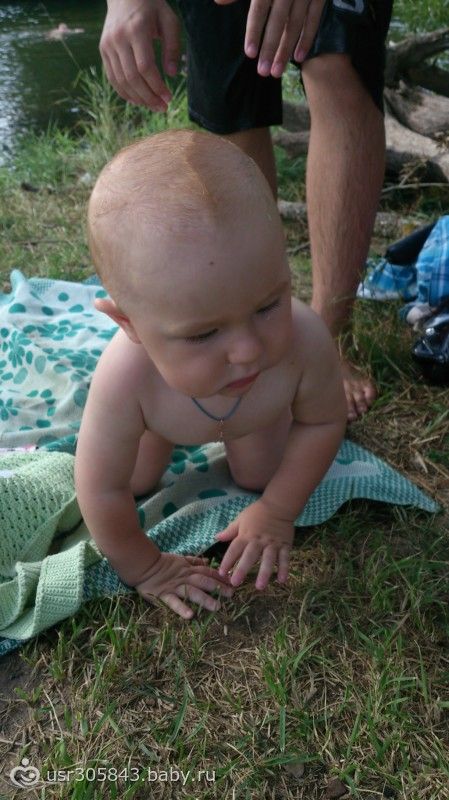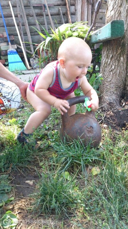 Ну вот, Диме сегодня 11 месяцев) Еще чуть-чуть, и стукнет годик… Так быстро пролетел год, ужас! Димон сегодня пошел, пару дней делал по два-три шажочка, а сегодня вечером прям буквально разошелся, ходил-мотался туда-сюда) Годовасие мы будем отмечать в Турции, ничего конкретного планировать не буду. Заказала в Красном кубе именной бодик с надписью и съедобную прикольную свечку-единицу. Куплю, наверное, еще колпаки и какую-нить праздничную мишуру. Вчера обнаружила у Димы сзади две проплешины. Сначала распереживалась, что чего-то не хватает в организме, потом решила, что это младенческий волос меняется на взрослый. Оказалось все намного проще… Наш папаня решил поиграть в парикмахера, пока я была на йоге, т.к. ему, видите ли, не нравятся длинные волосики сзади и он решил чуть-чуть пройтись машинкой. Но Дима вертелся, и получились плешки. Чуть не убила. Постригла сегодня сама. Разницы особо нет, честно говоря, как был лысый, так и остался))) Научился обниматься) Говоришь ему: «Покажи, как маму любишь», он ручонками обхватывает за шею и обнимает изо всех силенок, так умилительно… Обнимает всех, кроме моей мамы, фиг знает, почему… Маме очень обидно, она с ним больше всех возится, кроме меня, конечно. В деревне Диме очень нравилось, все так интересно, он практически не капризничал, часами мог ходить везде, держась за палец)))