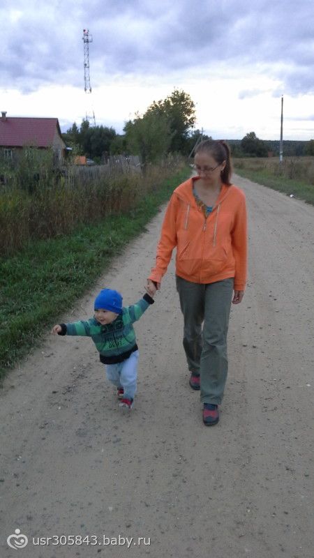 Ходили гулять. Дмитрий, будучи высаженным перед прогулкой, все-таки сделал маме сюрприз)