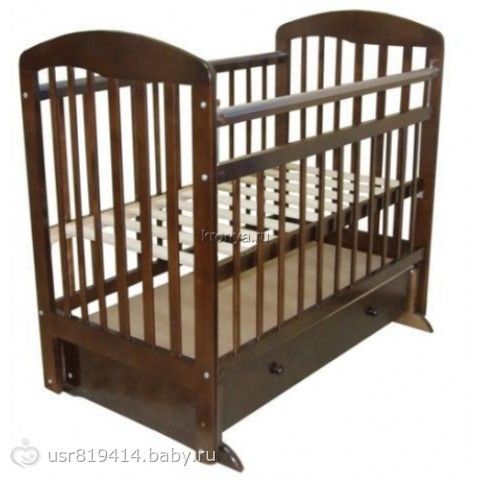 - В завершении стоит отметить, что данная кроватка имеет практически полную комплектацию, свойственную детским кроватям. Основным отличием ее от более дешевых моделей является наличие закрытого выдвижного ящика для вещей и поперечного маятникового механизма укачивания.
