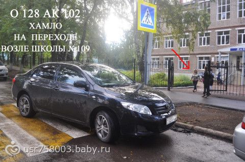 Вот такой снимок прислала мне сестра из Уфы. Пишет «1 сентября, 9.45, школа 109. Дети идут на торжественную линейку с цветами, тут подъезжает некая дама, паркуется прямо на переходе, и уходит по своим делам. На замечание, что здесь нельзя стоять, ответила, мол, все места заняты. Родители обалдели от такого беспредела, к счастью, у многих оказались с собой фотоаппараты (праздник все-таки!). Отправили фотографии в ГИБДД. Ждем ответа». А у меня вот возник вопрос: интересно, когда у этой автохамки дома занят туалет, она идет по-большому на балкон или в зал, если там свободно?