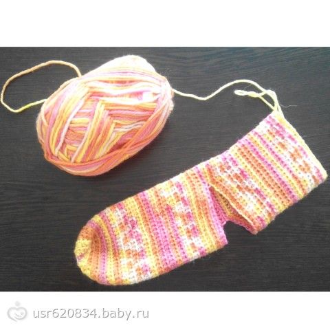 А розовенькие из 100% новозеландской шерсти. Это я для себя)) Если выйдут удачно, то задарю подруге, она точно оценит. Мне самой очень нравится, муж восторгается. Подарил мне пару дорогущих крючков. В общем, мне есть чем заняться, пока он будет в море...