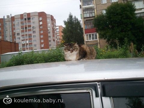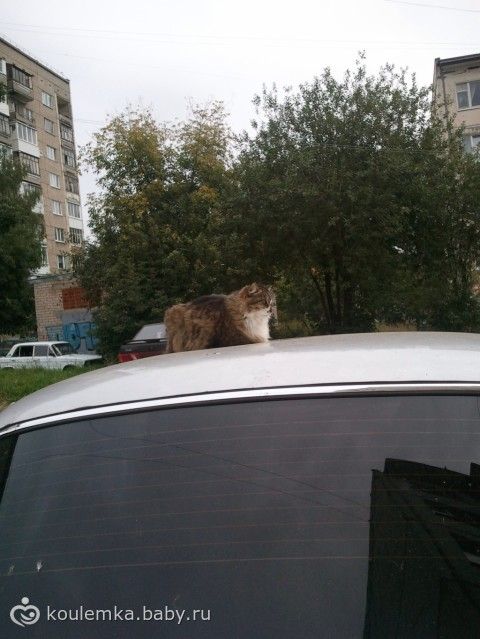 Потом пошли домой встретили снова кота из 4-го подъезда. Он кстати любит сидеть на крышах машинОн там мылся. Дочь его отругала: «Зачем ешь грязь с машин и микробы?»)) вот он: