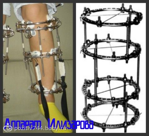 В 2003 году попала в ДТП, авария была страшнючая, пульс не прощупывался, огромная потеря крови и дело могло дойти до ампутации ноги + перелом таза(почему и кесарили). В общем 16 операций,3,5 года на костылях отходила, 3 года из них с аппаратом Илизарова.(фото не мои, картинки из интернета).
