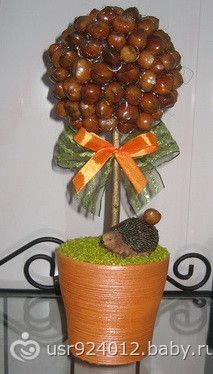 Девочки!!! Решила сотворить топиарий из фундука. Слямзила идею в инете. Но орех в своем родном цвете смотрится блёкло, хотелось бы покрыть лаком — понарядней выглядит))).