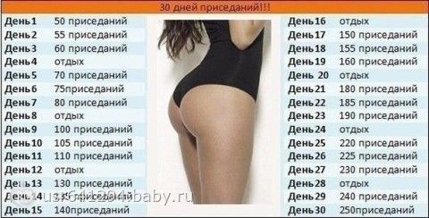 Эффект от приседаний с максимальным весом в 3 подхода по 8-12 раз будет гораздо выше, чем от 250 приседаний :)) про пресс — не сторонница ежедневного качания пресса, максимум 3 раза в неделю. Ну и 60 раз — это тоже перебор уже