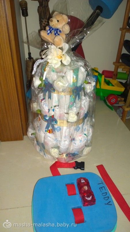 … подарки от соседки — торт из памперсов для младшего и машинка для Феди-Тедди :) так приятно :)