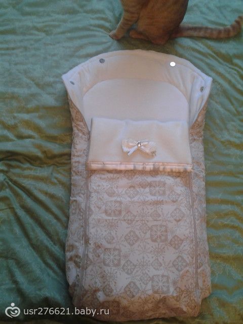 Ура! наконец-то мы дошили конвертик! Получилась красота) и на выписку пойдет, и потом в коляску засовывать его буду для прогулок. Осталось только пуговки пришить для отворота. (извиняюсь за кошачью попку на фотках)