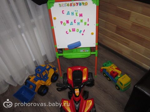 Сейчас ещё любит играть с буквами на мольберте, который подарили на День рождения! А потом и их катать в машинах!