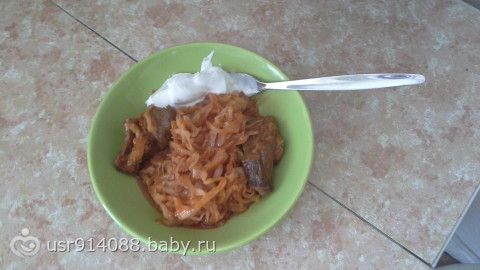 Обед говядина и капуста тушеная, сметана