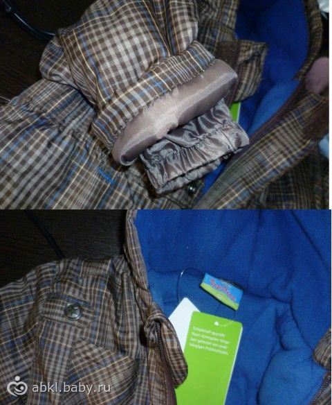2. Шоколадного цвета, клетка. Водоотталкивающая ткань верха, смесовый трикотаж внутри. Рост по бирке 62. Подходит с рождения до 7 мес.