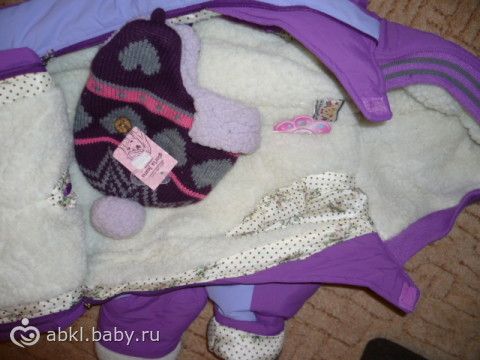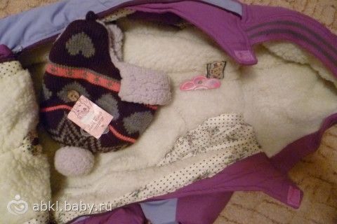 Трансформируется в конверт. Рукава закрываются от мороза. Есть «пинетки»-сапожки.