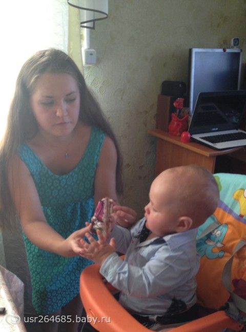 Вчера нашему сыночку исполнился год! Отметили очень хорошо много гостей и ребятишек! Рост и вес еще не знаю записались на следующий вторник. Мы уже ходим я бы сказала уже неплохо, но все равно боязно такое ощущение иногда что вот вот потеряет равновесие. Любит собирать и разбирать пирамидку, чтоб его катали на машине, еще отбирает ложку и пытается сам кушать, только из тарелки плохо получается набрать еды в ложку! Кстати еще достижение мы просимся на горшочек меня это очень радует! Говорит папа, папка, батя, батька, баба, бабка уже давно и на днях маме подарок сделал начал говорить мама у меня душа радуется когда он говорит мама. И еще пару слов палка, дать, дед, бутя так и не можем понять что это и конечно лялякает на своем! Ну и немного фото моего Мишутки! Всем спасибо кто дочитал до конца!