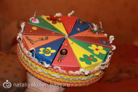Вот такой торт с пожеланиями (внутрь в каждый кусочек можно положить символические подарки с пожеланиями). я сделала такой подруге… на днях подарю. занимаюсь такими тортами)