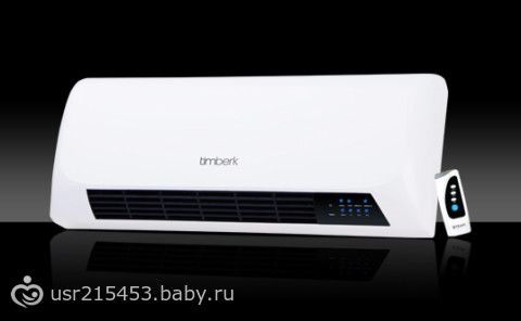 Недавно купили себе вот такую штуковину… Я про нее отзывы читала, одна мамочка говорила, что как раз для обогрева комнатки, где малыш спит она его использовала и очень он ей понравился. Стоит он около 1500-2000руб., может стоять на комоде например или можно повесить на стену, выглядит как кондиционер только поменьше. Включается обычно — в розетку. Есть пульт, что тоже очень удобно. Шумит не сильно, типа как обычный внтилятор, вполне можно уснуть под него.