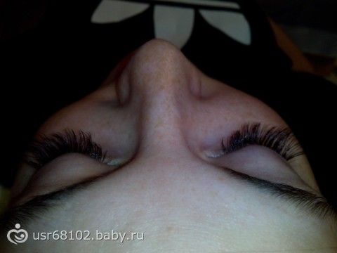Плохо видно конечно, но ресницы сами не айс по качеству.Не скупись на материалах, от этого все зависит) У меня некоторые клиентки рыдают, но я терпеливо жду и просушиваю ватными палочками и вентилятором)))