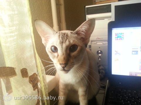 Сидим, играем с ней на полу, подходит Сима (моя сиамская кошка), я ее глажу, кошь поворачивается задом, дочь на уровне глаз видит хвостик с дырочкой попки с точками какашек, поворачивается ко мне и говорит: «КАКА». Потом снова смотрит под хвост, увидела писю, подумала, и добавила :«ВАВА». Занавес.