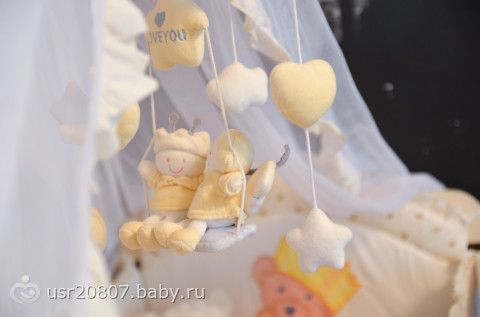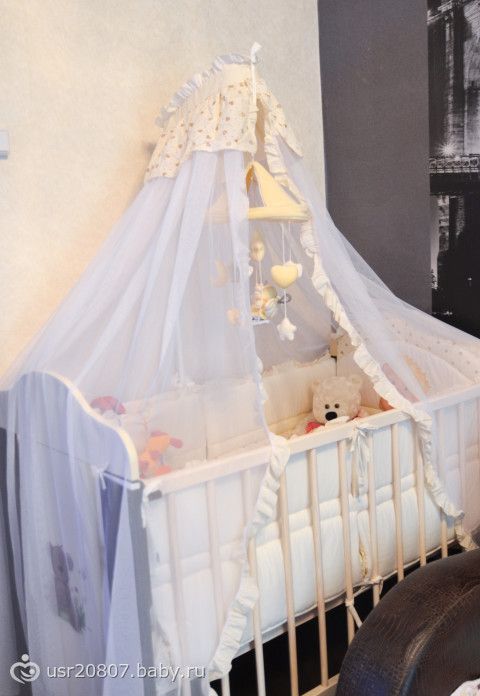А у нас балдахин только на первые две недели был, пока малышка в коляске спала.