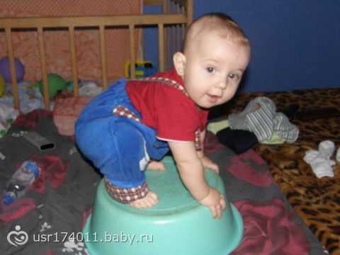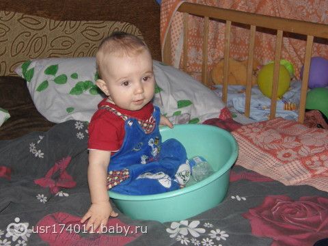 Приветик всем, наконец то интернет есть. Дела наши вроде бы хорошо. Ходили в врачу малой вовсе не вырос ( 75 см ) и поправился на 900 грамм за два месяца ( 10,300 кг, в прошлом месяце похудел на 100 грамм.) Все так же пьем лекарство для поднятия железа в организме.Кушаем все кушает мама, то что готовится отдельно кушать не хочет. Уже сам может пройти пол комнаты, но пока не очень стремиться ходить. Любимые игрушки стали горшок, миска для белья, кастрюли, прищепки, коробочки… Немного фото