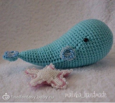 Ручная работа, пряжа акрил и хлопок, наполнитель холофайбер, вышивка бисером. Китёнок 18см, морская звезда 7 см. Стоимость 200р.