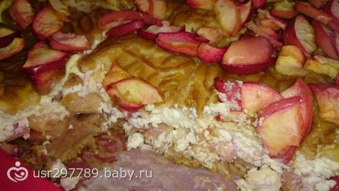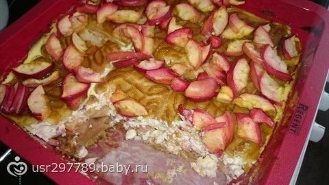 Творожная запеканка с яблоком и печеньем, получилась как тортик)))