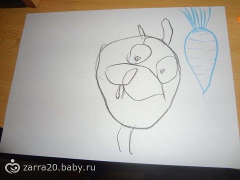Морковку я рисовала, а это «кролик» — доча рисовала.