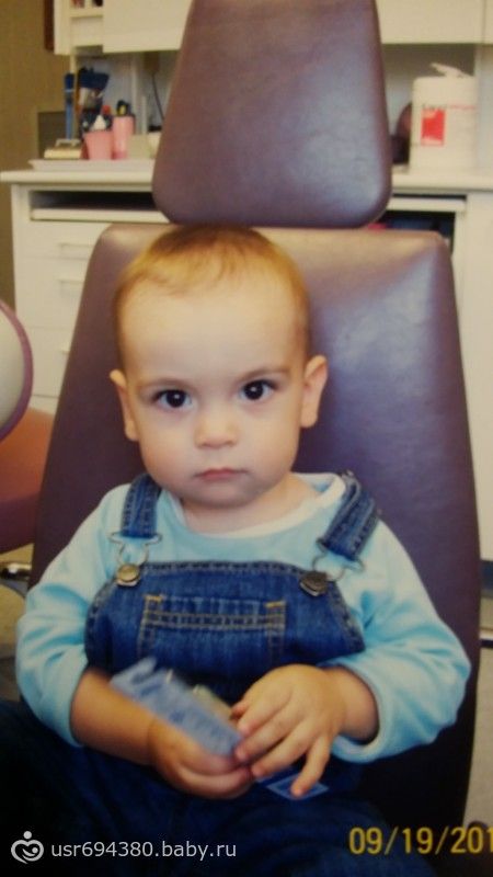 Неделю назад ходили к дантисту первый раз. Из всех врачей, которых посетили в штатах, этот больше всего понравился)) Все-таки зря я боялась — они спецы)) знают как дитенка заставить рот открыть) Сын хоть и поорал немного, но больше от досады, что его неволят рот открыть)) Нанесли фтор на зубки, показали как чистить, выдали Витьке зубную щетку и сделали фотку на память — «Мой первый поход к дантисту»=))