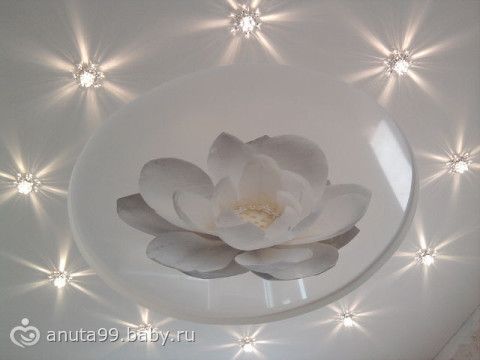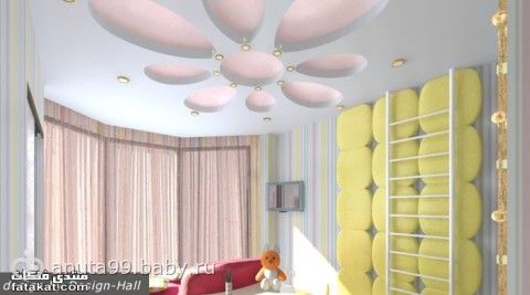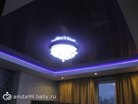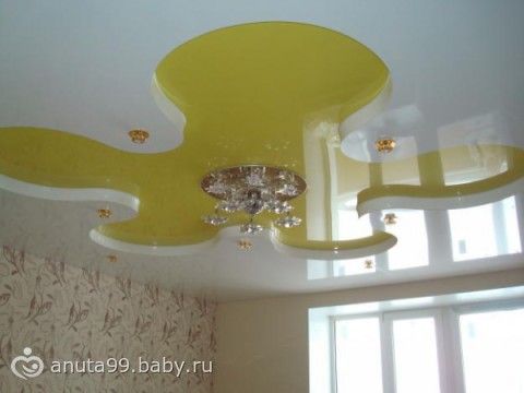 В спальне вот такой мы потолок сделали (занавески временные, внимание не обращай)