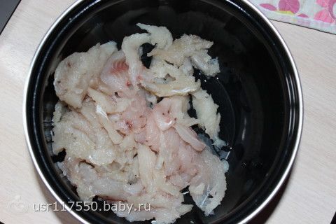Прокручиваем филе рыбы через мясорубку(я прокрутила 3 раза из-за мелких косточек)