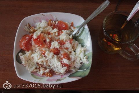 Завтрак: Так как думала что буду на белках но передумала вы знаете, омлет с помиором.