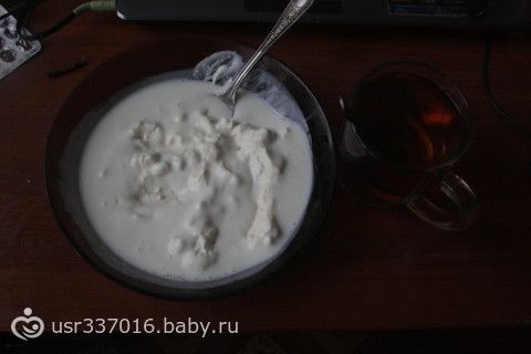 Полдник: Творог с кефиром.