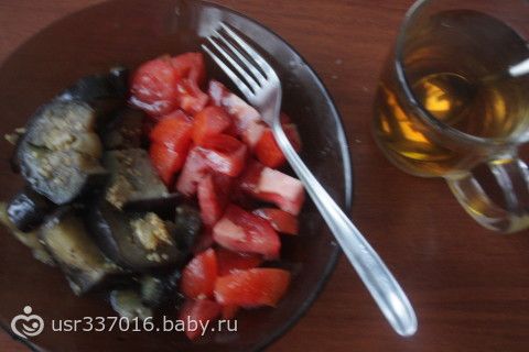 Ужин: Баклажан тушёный и помидор, но баклажан чуть чуть съела невкусный что то