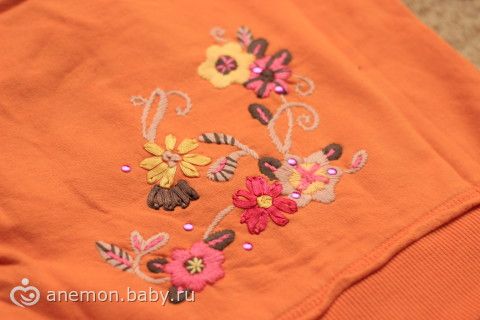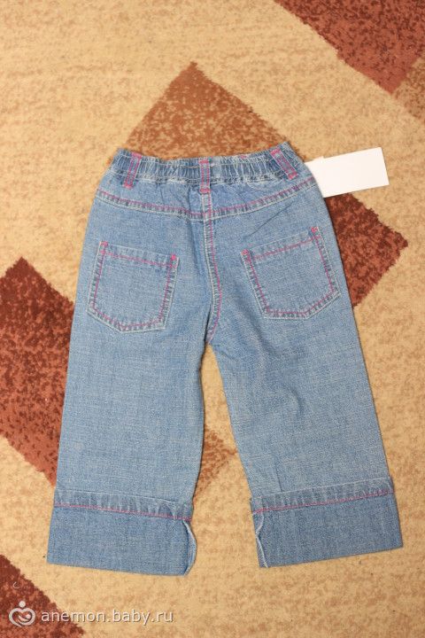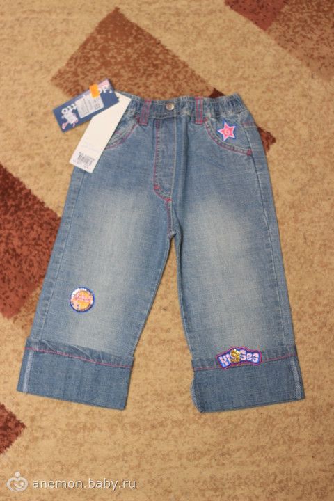 А эти джинсы меня немного смутили. Сейчас носить нормально, но если на подгузник (а мы уже 2,5 месяца без него). Еще они тонкие, скорее летние, но на лето нам бы не хватило точно, а отогнуть не вариант, там все намертво пришито. А потом я почитала этикетку, там возраст указан 3 года! И тут до меня дошло, это же бриджиТогда на следующее лето они нормально будут! Только отпорю нашивки, не люблю такое.