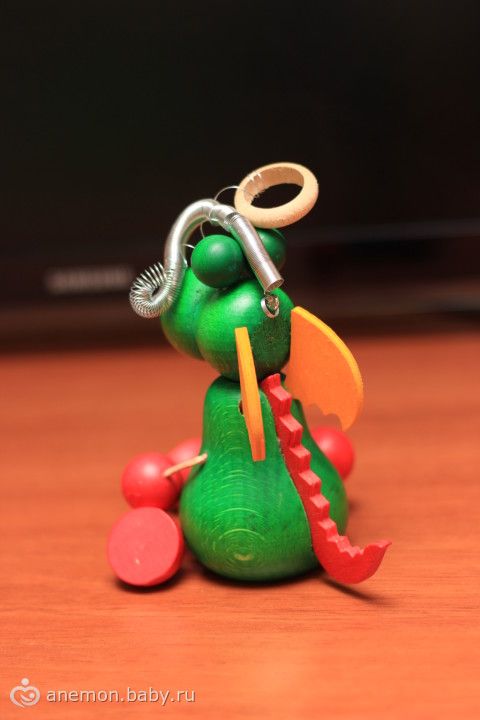 Тасенышу еще подарила игрушку — дракончик на пружинке (Тася у нас, кстати, дракон по восточному календарю). Ребенок у меня в восторге, уже пружинку сломала)) Сама игрушка деревянная.