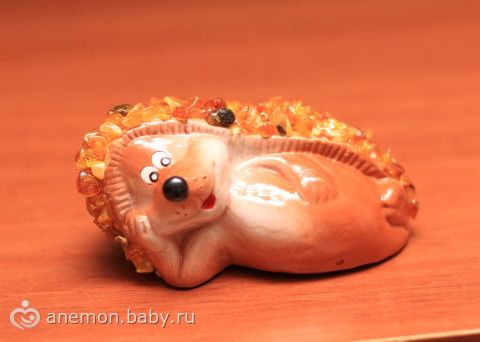 Нам с мужем совместный подарок — янтарный ежик. Он уже хорошо пристроился на полке между двумя янтарными деревьями))