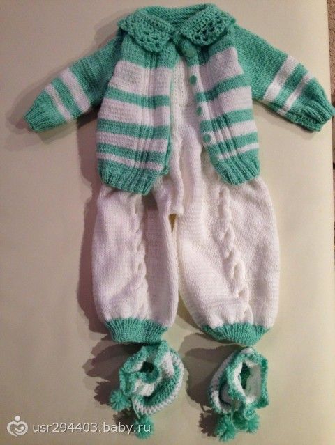 Всем приветик!)) подружки знают… Вязать я не умела совсем! Все что я вяжу — это мастер классы и видео уроки из инэта!)) вот на ваш суд костюмчик с пинеточками!