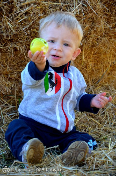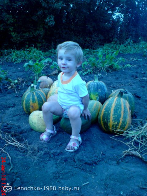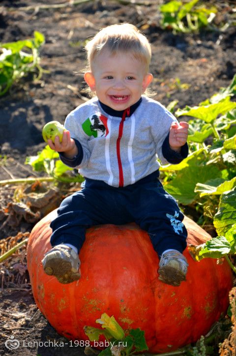 И как только я увидела большую красивую тыкву у знакомых на огороде, не постеснялась посадить туда своего малого и сфотографировать на память)) Фото сделала 16 сентября, Никите здесь 1 год и 2,5 месяца