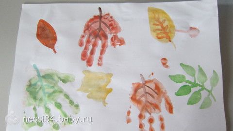 Интересное задание на сортировку, только вот у нас ни желудей, ни каштанов....(( Мы тоже изображали листопад ладошками. Очень яркий и красивый у вас получился!